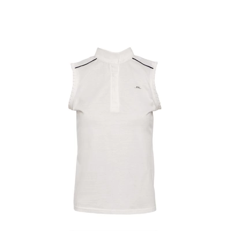 The Monza is sleeveless, so its cool and comfortable and won’t bunch up under your show coat. It is made of cotton with a luxury soft hand feel. It snaps closed to competition collar, and has pleated sleeve/shoulder detail.