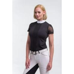 Made of technical CoolP and silk soft lace fabrics for functionality and softness against the skin. This show top is a unique competition style, which has been developed for both elegance, and active wear.