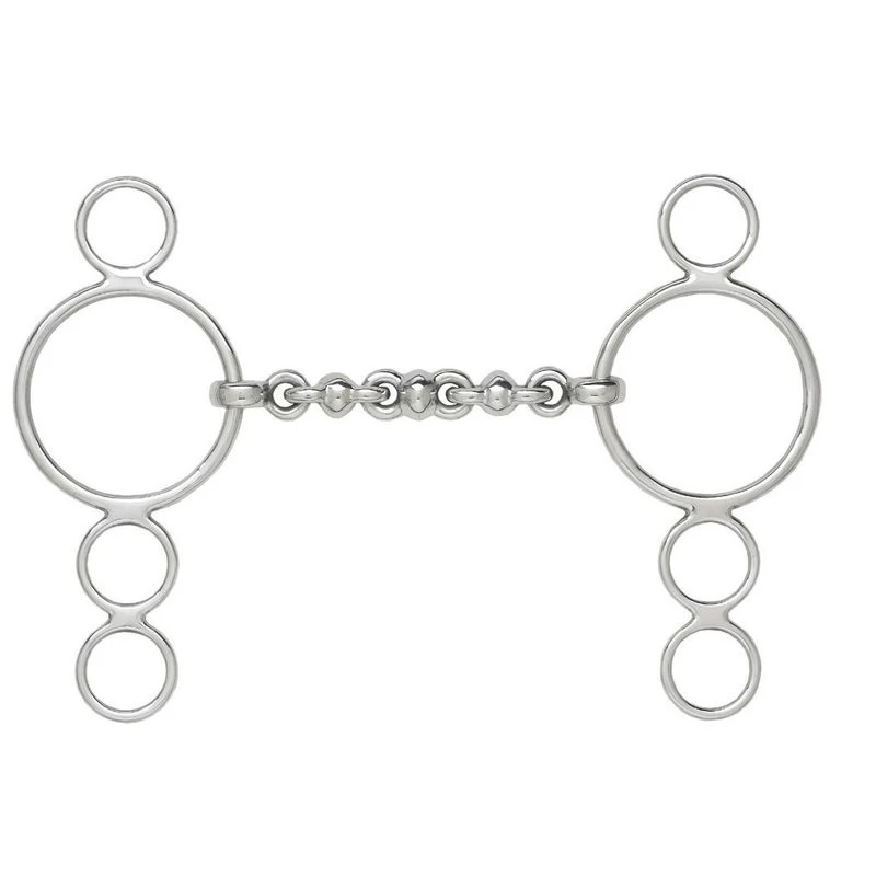 The Waterford 3-Ring Gag is a high quality bit that is designed with a Waterford mouthpiece. Each side of the bit is perfectly balanced to assure total comfort and response. Lost wax cast and hand polished from the highest grade of 18/8 Stainless Steel. Lifetime guarantee against rust.
