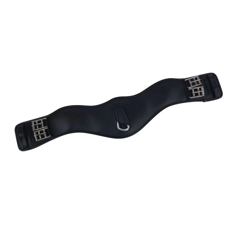 This durable, lightweight and synthetic girth which is non-galling and easy to maintain. It has internal elastic that offers a comfortable fit with and stainless steel roller buckles for easy adjustment. The curved, anatomic shape allows complete freedom of movement while keeping the saddle securely in place. A center D-ring allows for quick and easy attachment of training aids.