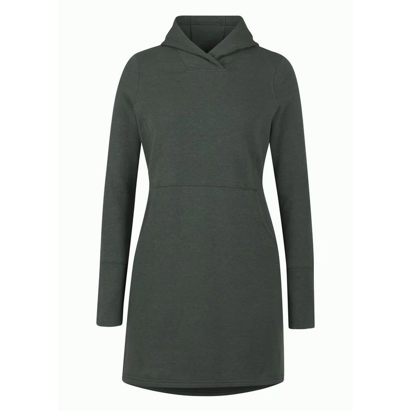 Indulge in the comfort of your favorite snuggly sweatshirt, with fabric softer than your oldest flannel sheets, in a dress that flatters with a slight A-line shape and a looser, relaxed shape for a casual fit. Pair with leggings and sneakers or tights and tall boot; there are million ways to enjoy it! Features include a sporty tunic length that hits mid-thigh, a wrapped front neck with a cozy hood, long sleeves with wide cuff detail, pockets for phones and chocolate kisses. Length from highest point of shoulder 35-inches on size medium.
