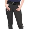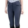 This classic high waist, full seat breech is made in a four stretch fabric. It has a comfistick silicon full seat and elastic leg bottoms. The two slanted side pockets are decorated with discreet floral crystals. The tailored waistband has a vee back and belt loops.