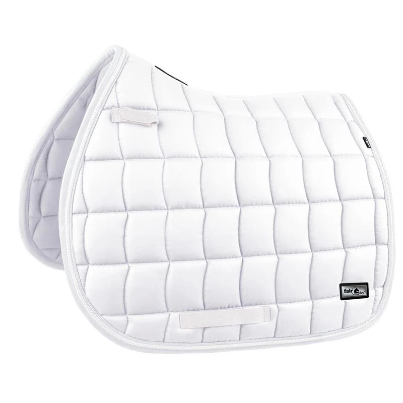The Fair Play Xavier saddle pad has bold rectangular quilting and double trim all the way around.