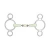D-Rings prevent the bit from being pulled through the horses mouth. They lie more steadily on the tongue giving a more comfortable feeling. Gentle pressure is pivoted directly onto the tongue ensuring light and precise rein aids. The fixed rings enable the rider to have a good contact with the bit. The additional contact surface from the cheeks on the mouth corners supports guarding and sideways acting rein aids.