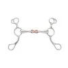 Novocontact bits are designed to create a unique oval shape which widens the contact surface on the tongue while the rider keeps a steady contact. As the rider gives a rein aid the mouthpiece turns forward and the contact surface gets narrower, ensuring more precise and effective communication. Novocontact bits improve the interaction between horse and rider for a better contact and acceptance of the bit. Tests have shown that single jointed Novocontact bits are highly recommended for horses that do not take the contact confidently. They also provide added benefit for horses with a sensitive mouth, since the rider is able to give precise but soft aids. Additionally, the mouthpiece is made of Sensogan. Developed by SPRENGER, Sensogan is toxicologically tested, has a high compatibility and is exceptionally well tolerated. Furthermore, the Sensogan mouthpiece is easy to clean and results in a consistent flow of saliva promoting bit acceptance.