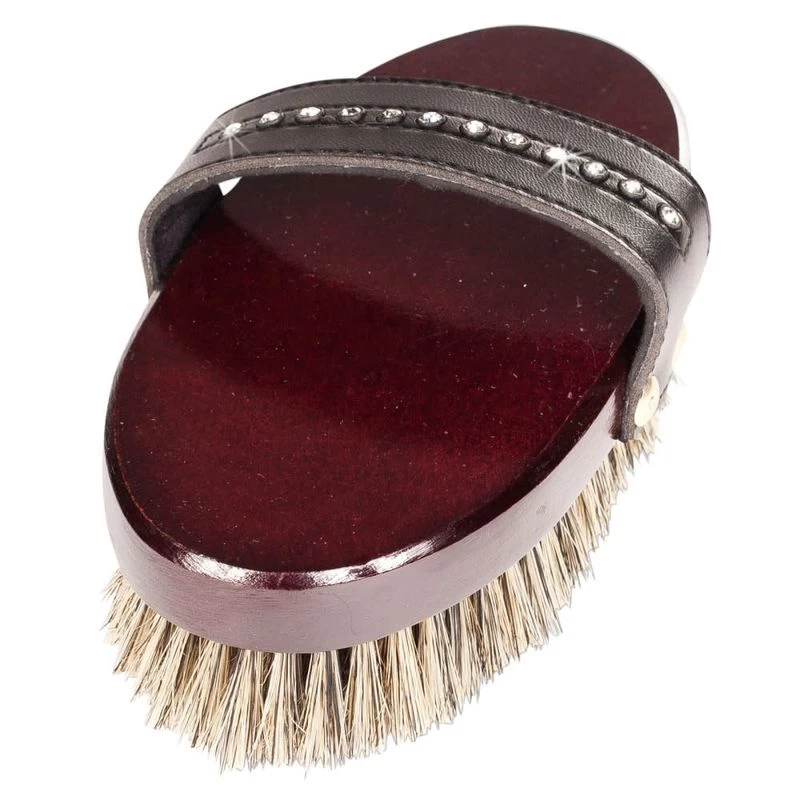 The Horze Deluxe Classic Body Brush is a traditional body brush for your grooming kit. Features include a hand strap with crystals.