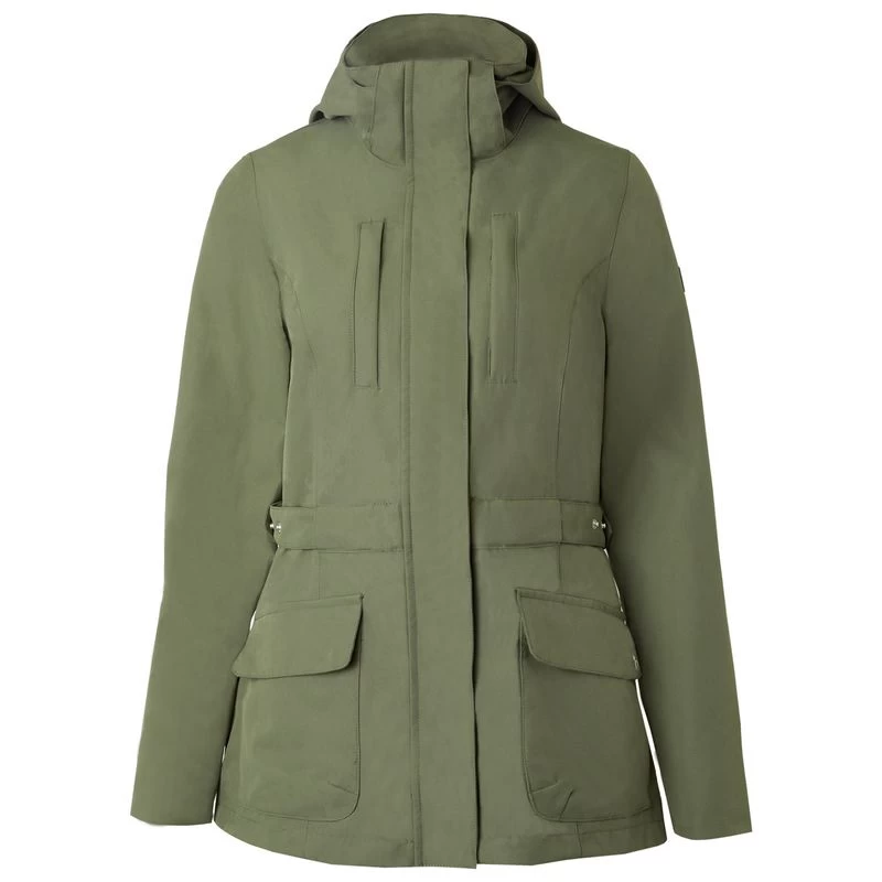 A stylish design with a tapered, fitted waist gives this women’s jacket a nice, custom look. The pockets hold everything from horse treats to car keys and cell phones. The Horze emblem on the shoulder and fine details such as press buttons and strong nylon zippers make this quality jacket durable and functional as well as beautiful. The fabric is breathable and waterproof and will protect you from warm summer showers. The back slit will help cover the saddle and allow plenty of freedom of movement. The sophisticated colors match with many items in the seasonal collection.