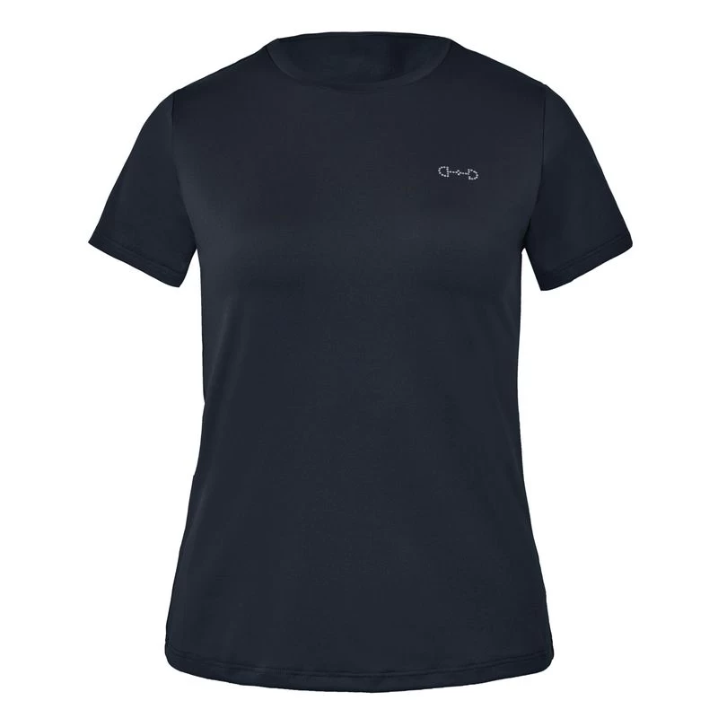 The Horze Tabitha t-shirt is super light and breathable, keeping you cool during training or on stable days. Elastic fabric offers a nice fit, and stylish colors can easily be paired with your favorite breeches, jacket or jumper. The timeless cut will not go out of style. A small crystal detail in bit form adds an elegant touch.