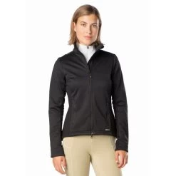A classically styled softshell riding jacket, this piece is sure to be a favorite. The bi-component softshell fabric is wind, water, and stain-resistant. The stretch panels under arm and on sides offer optimal breathability and freedom of movement.