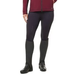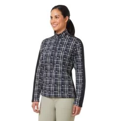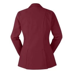 Simply pull on an elegant, stain and weather-resistant silhouette that breathes and stretches in the saddle, then toss it in the wash for next time. No ironing. No worries. Strategic, contoured design flatters a range of body types. Hidden front zip with snaps stays smooth for a streamlined silhouette. Eyelets at waist secure riders number strings. Four snap front.