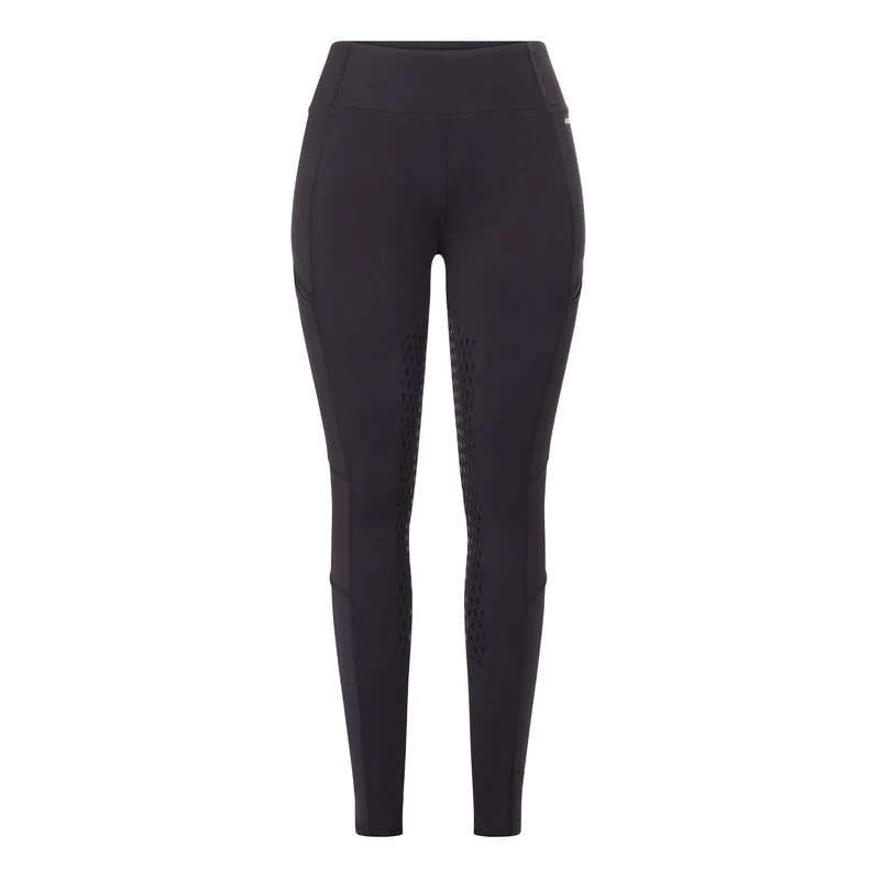 A snuggly step up in warmth, these comfy tights feature a stretchy knit, engineered with light compression and a brushed fleece interior perfect for cool weather riding. Modern, athletic detailing includes a wide comfort waistband and two pockets easily accessed in the saddle. Silicone Kerrit Sticks along the entire inner leg provide comfy security – all the security of a full seat, but the comfort of a knee patch!