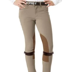 The Celebrity Jod is created in EuroWeave with a woven mid-weight poly-viscose elastane for just the right amount of stretch and TwillFlex 2-way stretch that is soft, highly wicking, smooths and conceals while maintaining shape. This jod has a classic fit with a mid-rise, wide 2-inch waistband, slash front pockets with double piping, cuff bottom with removable elastic straps, and Syn-Tec Stretch Suede knee patches with euro seat.