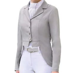 This is a chic dressage show coat that is tailored for a form-fitting look. Short tailcoat offers subtle details for an elegant, show-ready look.