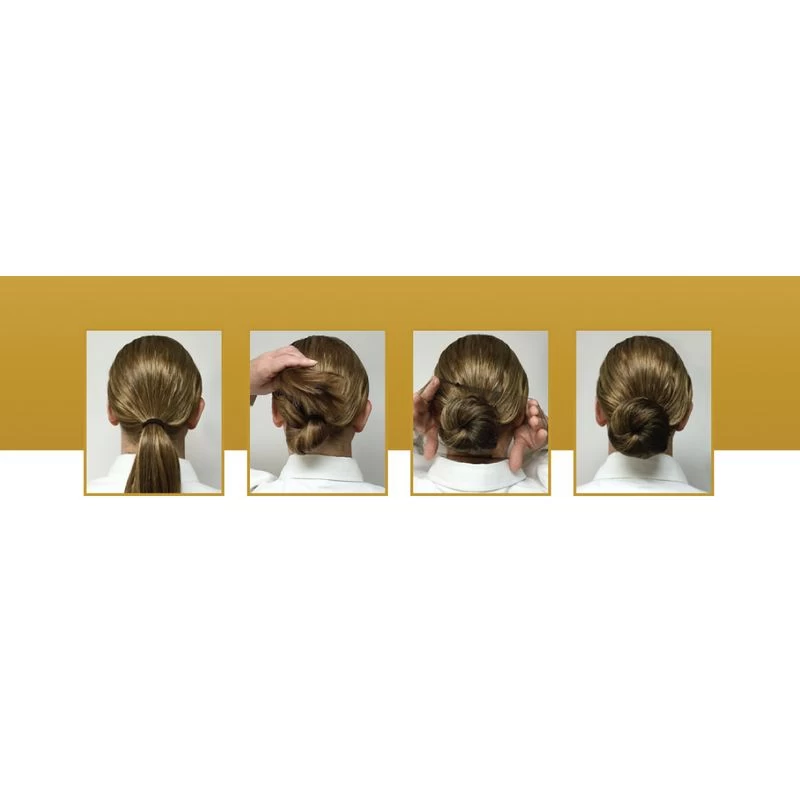 Ultra sheer, stretchable bun net allows hair to blend in and looks invisible! Kit is contained neatly in a gold organza bag and includes: 2 bun nets, 2 elastic bands, 10 bobby pins.