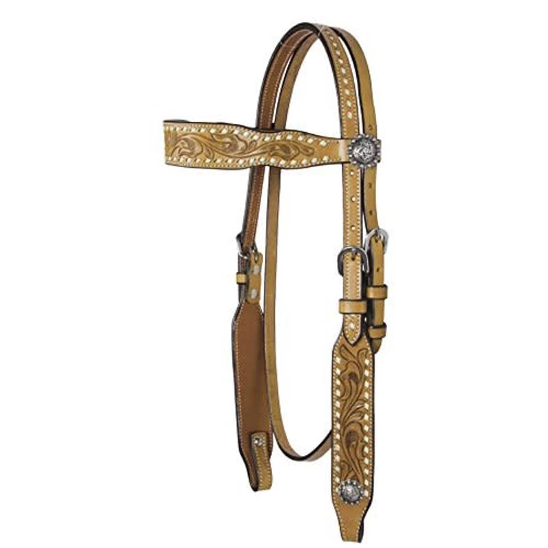 Western Rawhide Country Legend Buckstitch And Flower Browband Headstall – Golden Tan