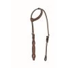 This bold browband features a cut out tie dye design with a color coordinated whip stitched border with constrasting tooled leather accents. This headstall is adjustable at both cheekpieces and at the throatlatch. It has Chicago style screws for easy bit changes.