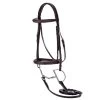 This set of split reins is perfect for the ring or the trail. With beautiful dark leather featuring natural and red rawhide detail, berri conchos, and hand stamped cowboy tooling.